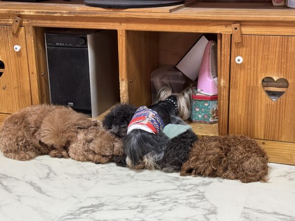 広島の犬舎もぽかぽかで、みんな気持ち良さそうにお昼寝タイムです。